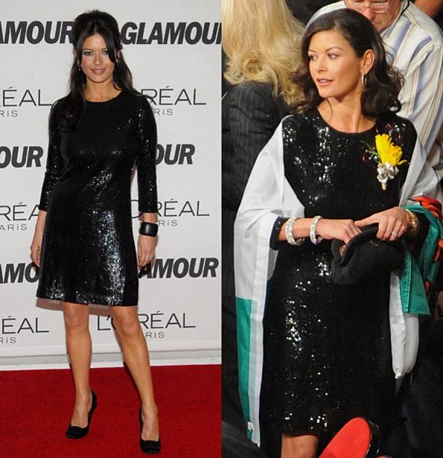 10. Gaun hitam milik Catherine Zeta Jones ini dikenakan kembali namun dengan padu padan berbeda.