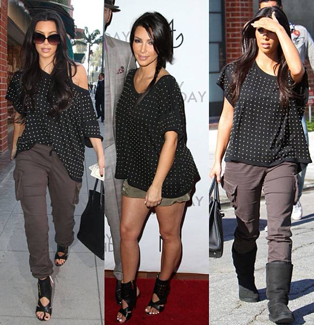 7. Kim Kardashian juga pernah terlihat menggenakan baju yang sama dalam beberapa acara berbeda.