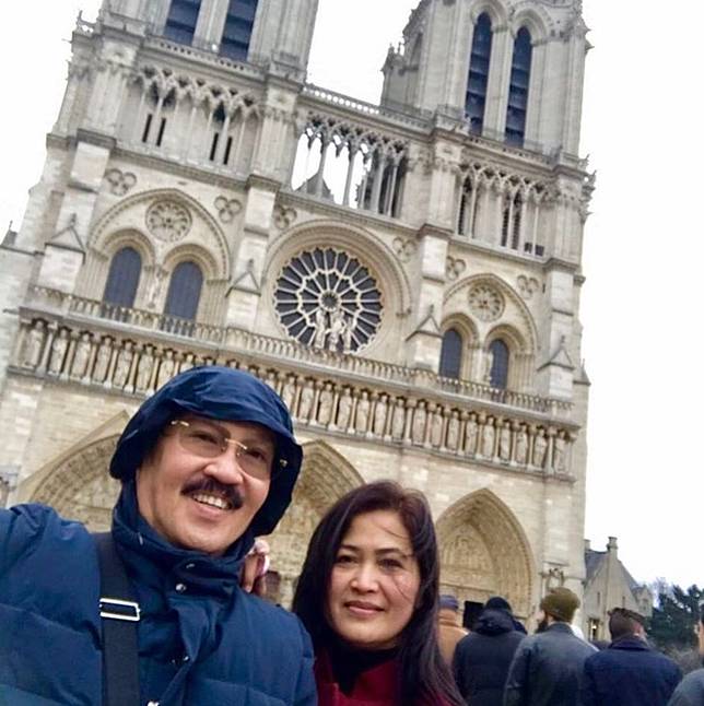 2. Masih di Paris, Fredrich dan istri berpose di depan Katedral Notre Dame. Cute banget ya mereka.