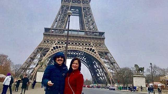 1. Belum ke Perancis namanya kalau gak foto di menara Eiffel. Fredrich dan istri tampak romantis banget ya.