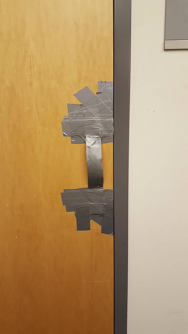 4. Kalo pegangan pintu lo rusak, kali aja mau coba pake lakban kayak gini