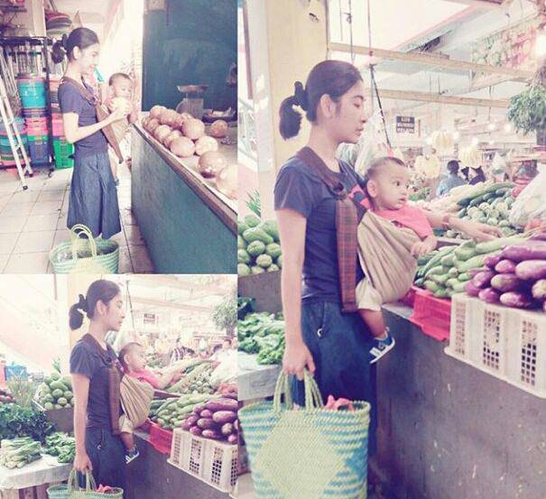 Ia juga kerap membawa serta si jagoan kecilnya itu pergi berbelanja ke pasar.