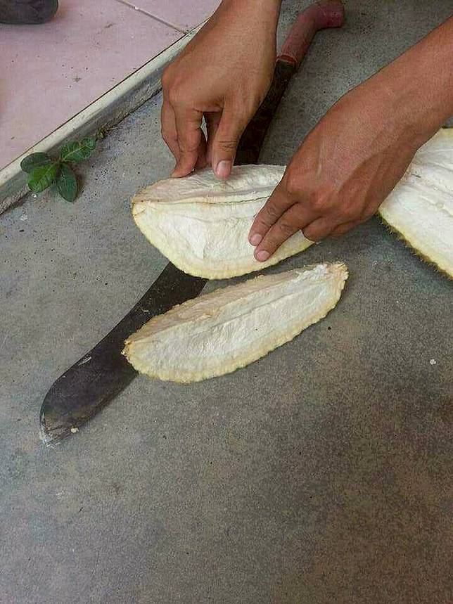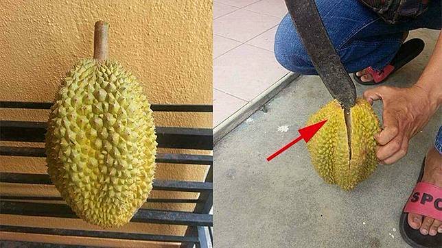 Foto-foto belah durian ini diunggah ke grup Facebook KOMUNITAS ORANG LUCU (pekan bully membully).