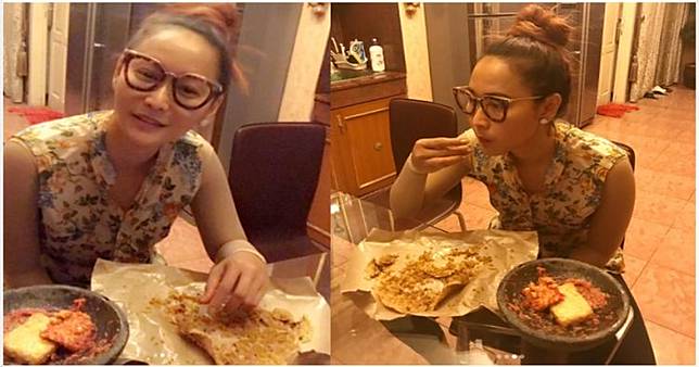 "Alhamdulillah ya Allah. Nikmatnya hidup. Dapat kiriman nasi berkatan dr tetangga, enak tenan. Pengen toooooh ??? Monggo di sawang dilihatin hahahahaa . Aku adalah aku. Lupakan saya orang terkenal. Lihat saya seperti org biasa sajah. Ojo dinyinyirin ya mba mas. pakai kamera depan, jd terlihat makan pakai tangan kiri. Suwoon."